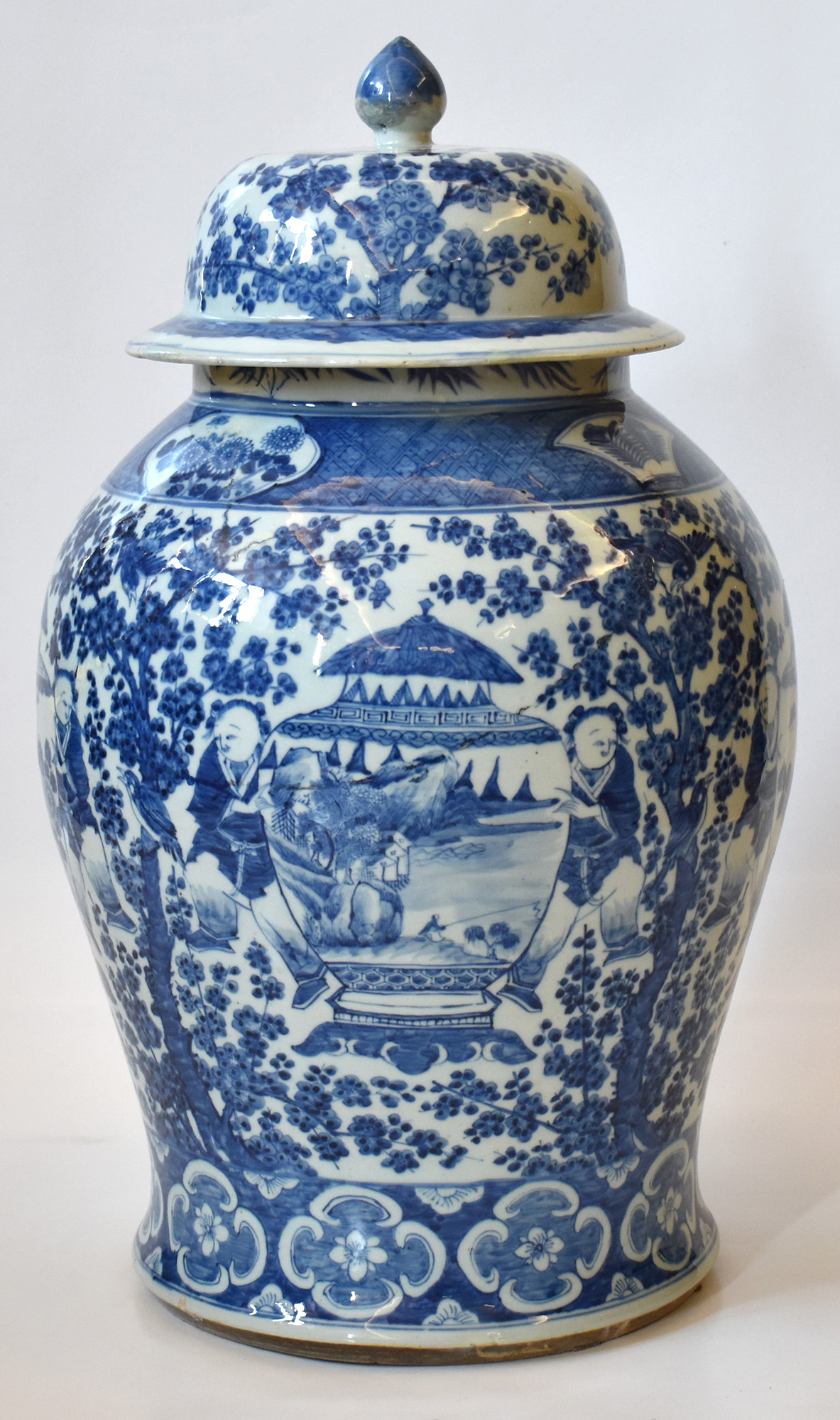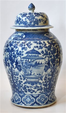 Cina grande vaso con coperchio in porcellana bianca e blu