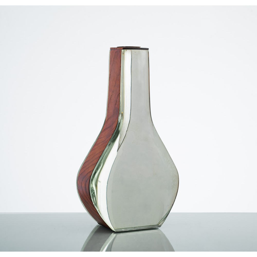 Vaso modello “2122” in legno, ottone, cristallo molato e specchiato.