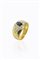 in oro giallo, al centro uno zaffiro taglio ovale di ct 0,80 e diamanti taglio brillante e 8/8 per totali ct 0,60 ca
