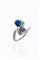 in oro bianco, anni '60, con due zaffiri taglio a goccia per totali ct 1,30 ca, diamanti taglio brillante per totali ct 0,05 ca e smeraldi taglio navette per totali ct 0,30 ca