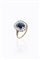 in oro a bassa caratura, XIX secolo, al centro zaffiro taglio ovale di ct 3,50 e a contorno diamanti taglio rosette per totali ct 1,0 ca