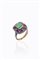 in oro a bassa caratura ed argento, XIX secolo, al centro smeraldo taglio ottagonale di ct 1,0 ca e rubini taglio rotondo a decoro