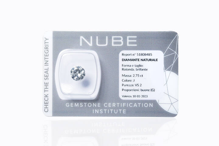di ct 2,75, colore J, purezza VS2.
