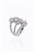 in oro bianco, sommità con tre fili recanti al centro tre elementi geometrici interamente in diamanti taglio brillante per totali ct 0,87 ca, probabile colore G-H, purezza IF-VVS