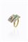 in oro giallo e bianco, sommità a greca, con uno zaffiro ed uno smeraldo taglio ottagonale a gradini per totali ct 0,70 ca e diamanti taglio 8/8 per totali ct 0,25 ca