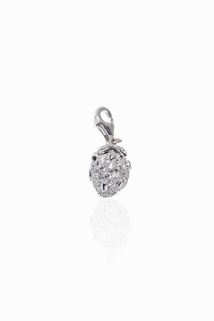 in oro bianco a forma di fragolina di bosco con diamanti taglio brillante per totali ct 0,90 ca, probabile colore G-H, purezza IF-VVS