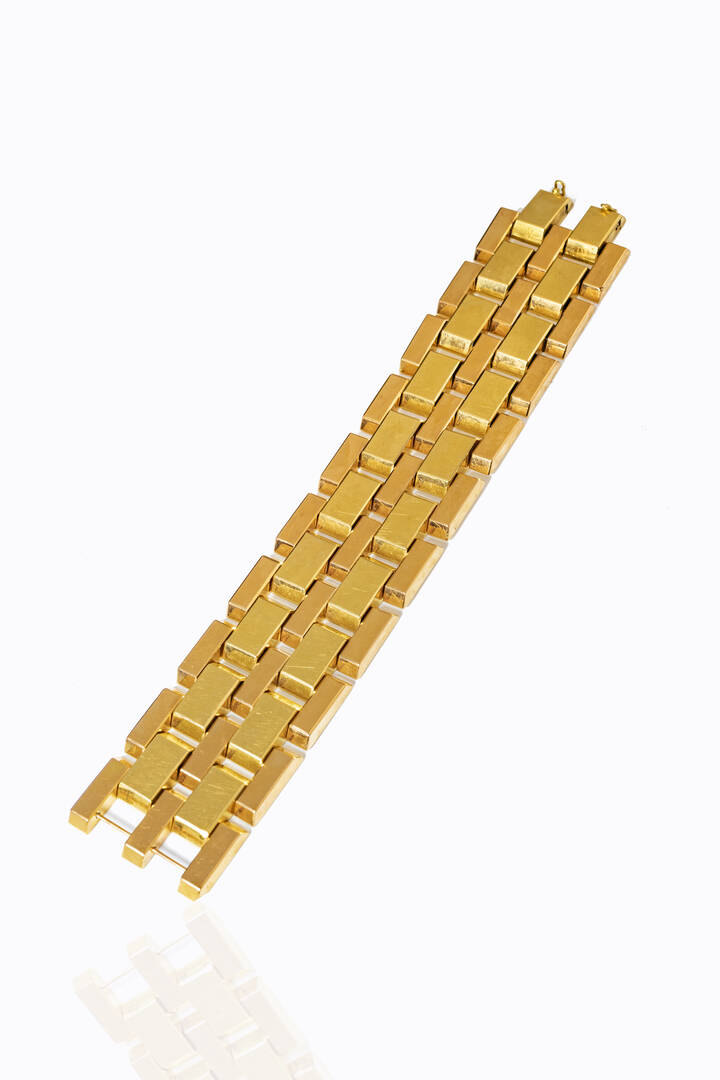 in oro giallo e rosa, lavorato a segmenti geometrici di forma rettangolare, anni '50.