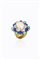 in oro giallo e bianco, sommità con al centro corallo rosa cabochon, contornato da diamanti taglio brillante per totali ct 1,30 ca, probabile colore G-H, purezza IF-VVS; sfere di lapislazzuli e di turchesi a decoro