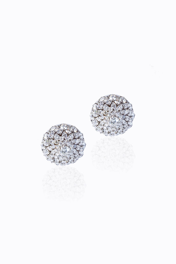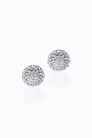 in oro bianco, a lobo, con semisfere in pavé di diamanti taglio brillante per totali ct 2,20 ca, colore G-H, purezza IF-VVS