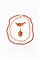 -ciondolo in metallo dorato con figura femminile in corallo rosso.