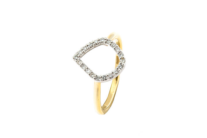 in oro giallo, sommità con elemento geometrico in oro bianco con diamanti taglio brillante per totali ct 0,18 ca, probabile colore G-H, purezza IF-VVS.