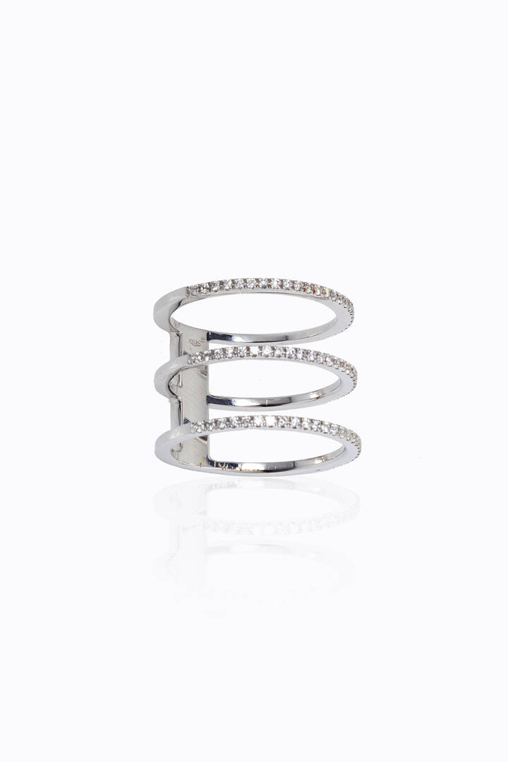 in oro bianco, sommità con tre file orizzontali in diamanti taglio brillante per totali ct 0,38 ca, probabile colore G-H, purezza IF-VVS