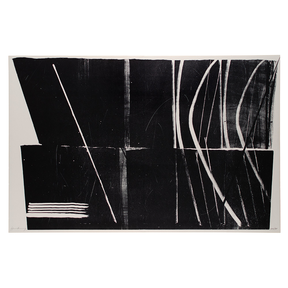 Litografia su carta a pagina doppia facente parte della cartella intitolata “Farandole - Suite lithographique de Hans Hartung - Poème de Jean Proal” , ed. 44/75, cm 50x74 , Ediciones Poligrafa, Barcellona.
