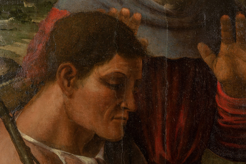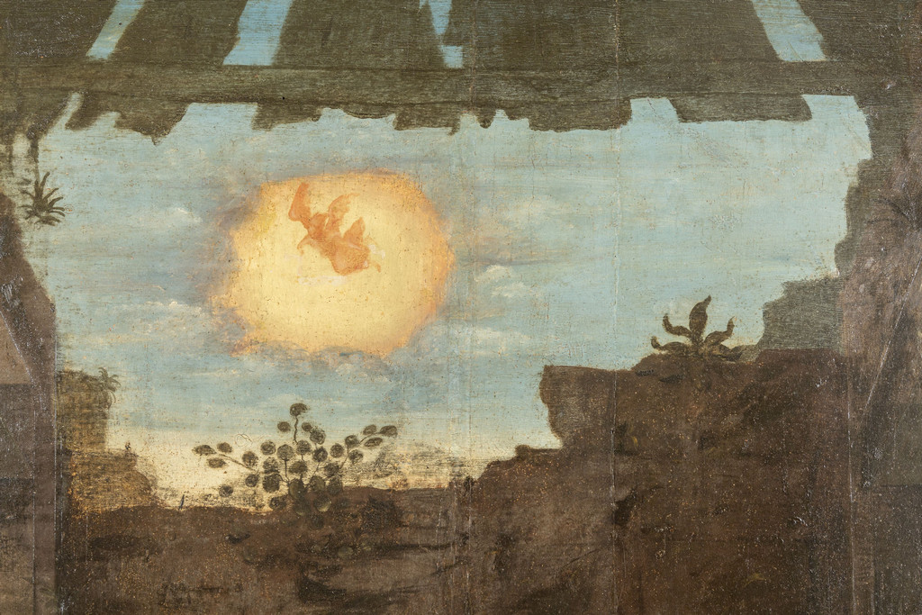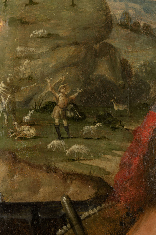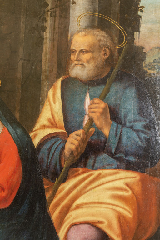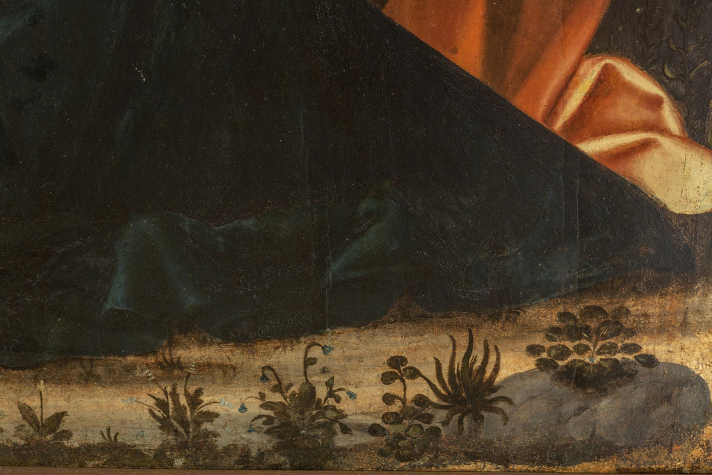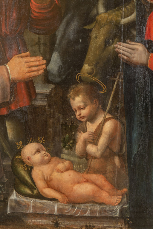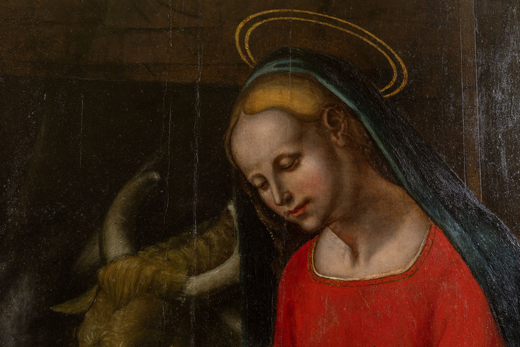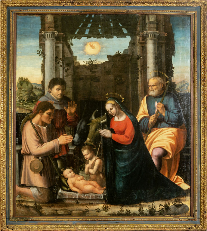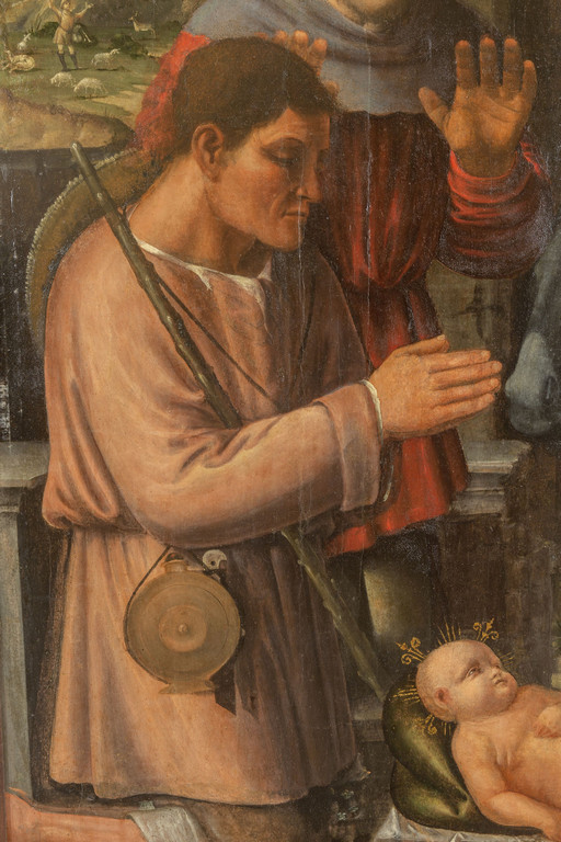 Scuola piemontese sec.XVI 'Sacra Famiglia con pastori' olio su tavola palchettata