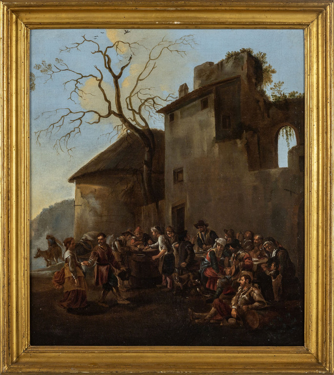 Scuola romana inizi sec.XVIII 'Festa paesana' olio