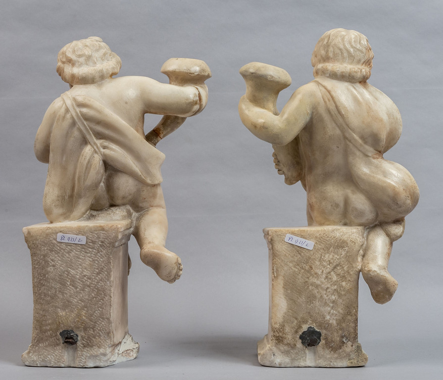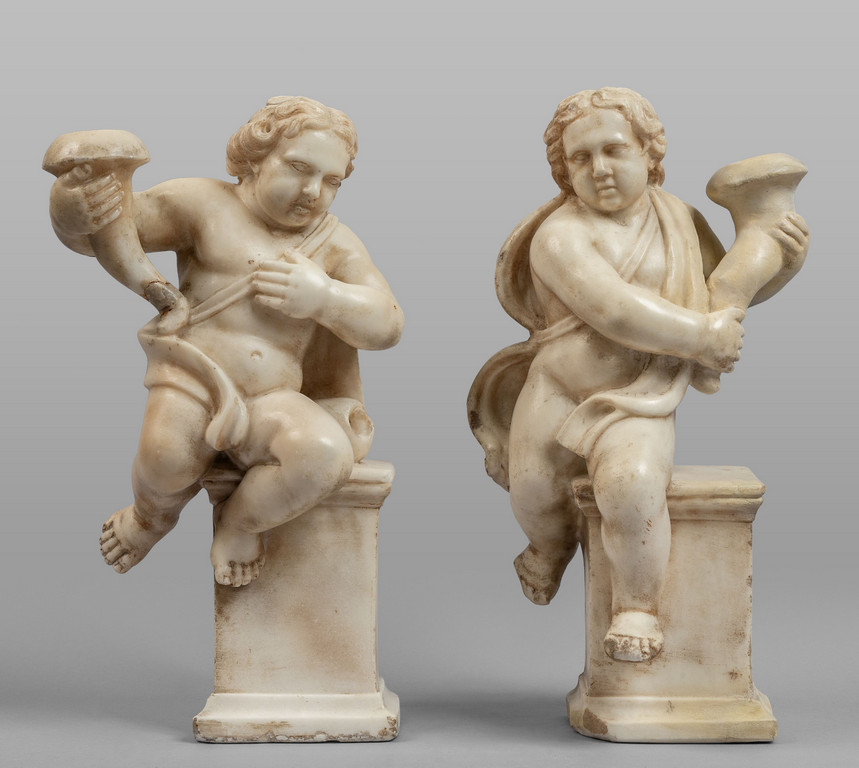 Coppia di angioletti portacero in marmo statuario sec.XVI