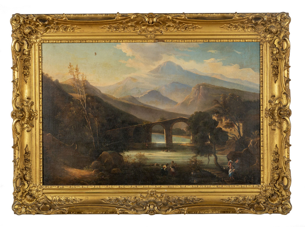 Scuola toscana sec.XVIII 'Il Ponte del Diavolo a Borgo a Mozzano' olio