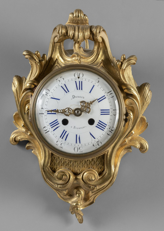 Cartel Luigi XV in bronzo dorato quadrante f.to Dugois a Bosancor Francia sec.XVIII (macchina sostituita con orologio a batterie)