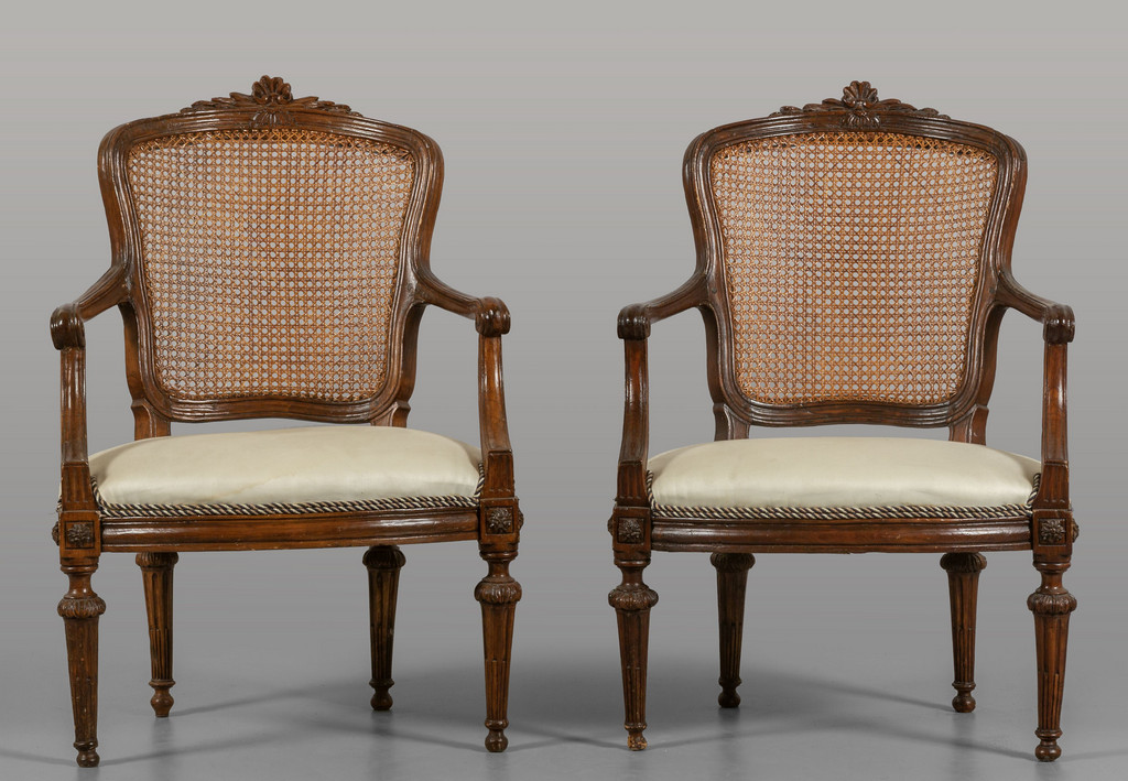 Coppia di poltrone Luigi XVI in noce Genova fine sec.XVIII