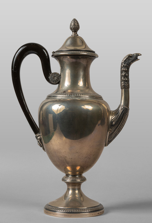 Caffettiera in argento in stile Direttorio con manico in legno