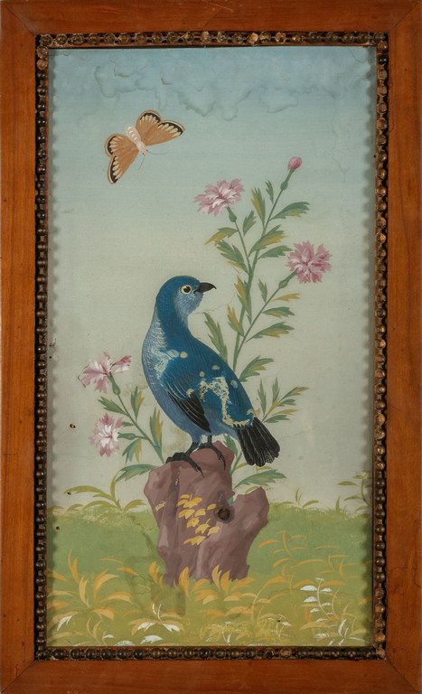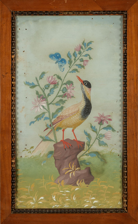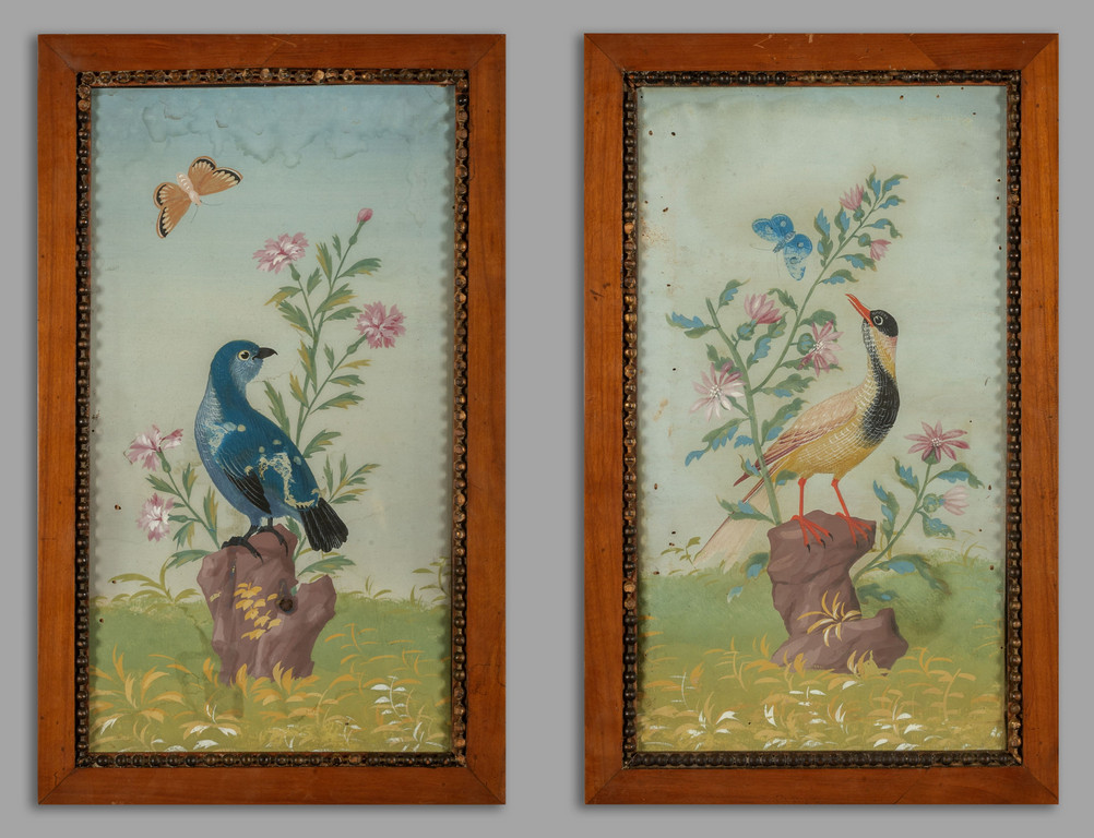 'Uccelli appoggiati su delle rocce' coppia di tempere su carta