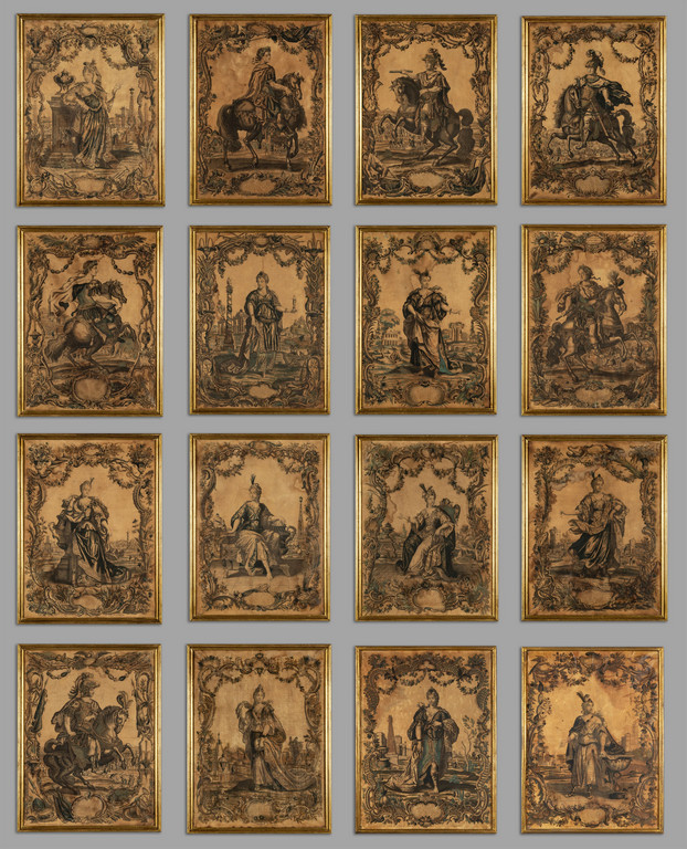 'Re e Regine' sedici stampe acquarellate Francia fine sec.XVII