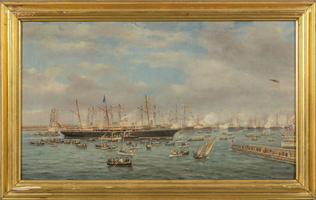 L'arrivo del Re e della Regina a Genova sul panfilo reale 'Savoia' durante i festeggiamenti per l'esposizione italo-americana in occasione del IV centenario della scoperta dell'America