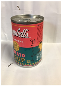 WARHOL ANDY Pittsburgh 1928 - New York 1987 "Campbell's Tomato Soup" Lattina di zuppa Campbell's cm 6,5 di diametro e cm 10 di altezza. Edizione limitata per i 50 anni (after).