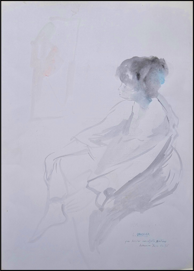 D'ANDREA LORENZO Lucca 1943 "Senza titolo" Acquerello su cartoncino cm 50x70 del 1997. Firmato, datato e dedicato sul fronte in basso a destra.
