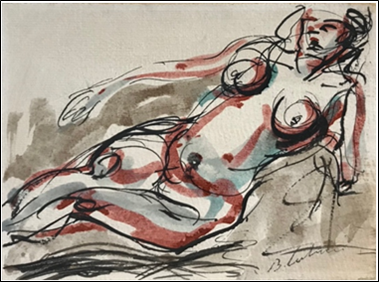 CALVANI BRUNO Bari 1904 - Milano 1985 "Nudo disteso" Inchiostro di china su carta cm 26x19. Firmato sul fronte in basso a destra.