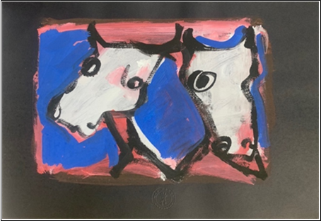 MARRA MAX Paola 1950 "Tori" Tempera su cartoncino nero cm 49,8x34,6. Timbro a cura dell'artista in basso al centro. Autentica su foto.