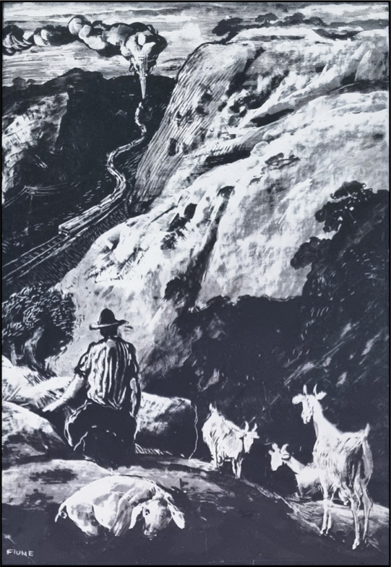 FIUME SALVATORE Comiso 1915 - Milano 1997 "Senza titolo" Xilografia ritoccata a mano, pezzo unico cm 12x18. Firmata sul fronte in basso a sinistra. Certificato di autenticità a cura della Cagnola Arte. Autentica su foto a cura del figlio del maestro.