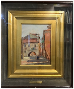 LUPERINI FIORENZO Livorno 1945 "Vicolo Chioggia" Olio su tavola cm 18x23,5. Firmato sul fronte in basso a sinistra. Sul retro firma e titolo.