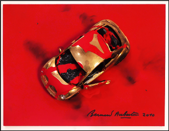 AUBERTIN BERNARD Francia 1934 - Germania 2015 "Voiture brulè" Modellino di macchina bruciata su tavola, cm 30x40 del 2010. Firmata e datata in basso a destra, provenienza studio dell'artista. Archivio su foto a cura della Rosenberg. Opera pubblicata sul catalogo della mostra "Voiutures dans le feu" a pag. 106.
