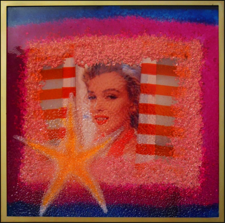 RONDA OMAR Portula 1947 - Biella 2017 "Marilyn Frozen" Tecnica mista, foto, tessuto, materie plastiche e resine cm 50x50 del 2005. Sul retro data, titolo, misure e numero d'archivio. Autentica su foto con numero di archivio e timbri.