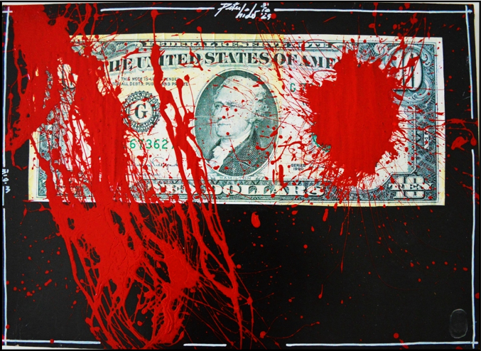 HIDE PETER - FRANCO CRUGNOLA Tradate 1965 "Blood Money" Tecnica mista su tela in teca di plexiglass, cm 70x50x4, del 2013. Firmata, datata ed intitolata al retro. Autentica su foto a cura dell'artista. Opera esposta presso il Museo Bodini nel 2015.