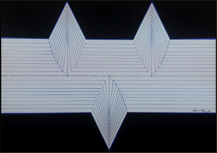 GARCIA ROSSI HORACIO Buenos Aires 1929 - Parigi 2012 "Senza titolo" Tecnica mista su cartone pesante cm 46,8x33 del 1987. Firma, data e luogo sul fronte in basso a destra. Autentica su foto a cura dell'artista.