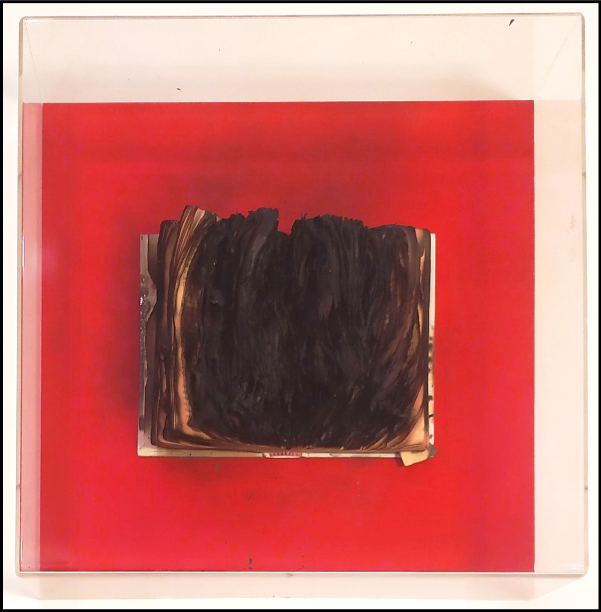 AUBERTIN BERNARD Francia 1934 - Germania 2015 "Livre brulè" Libro bruciato su tavola cm 40x40 del 2006. Firmato e datato sul fronte in basso a destra. Provenienza studio dell'artista. Archivio su foto a cura Rosenberg. Opera pubblicata sul catalogo della mostra Aubertin "Oeuvres Recentes" a pag.172.