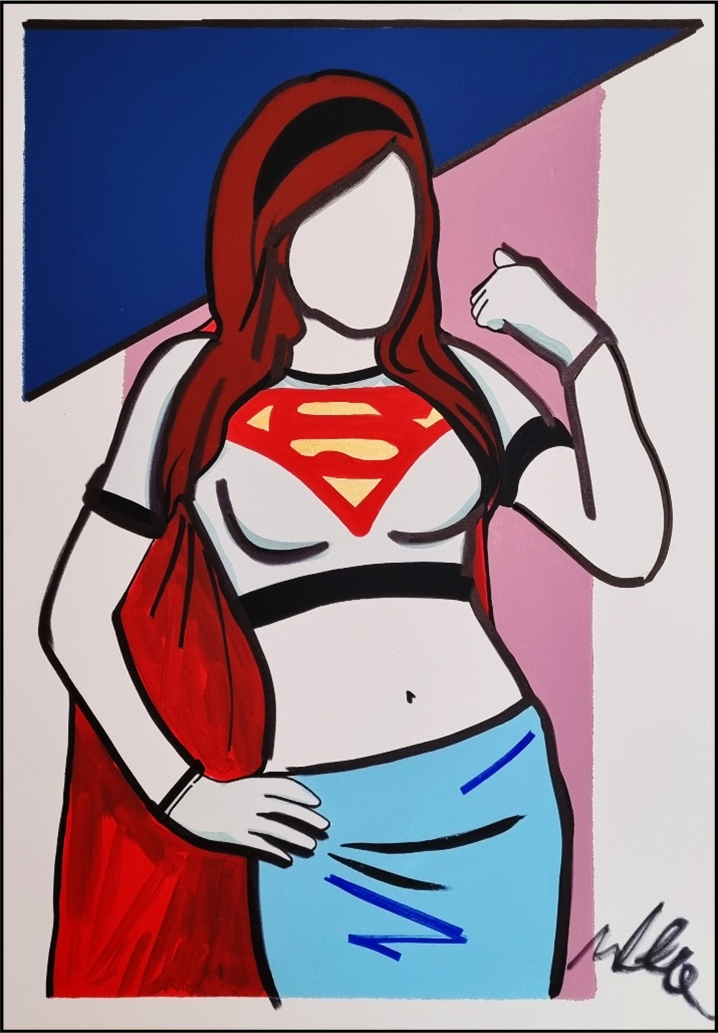 LODOLA MARCO Dorno 1955 "Super Pin up" Acrilici e smalti su tela cm 70x100 del 2013. Firmata sul fronte in basso a destra e sul retro. Opera archiviata e pubblicata sul Catalogo Generale a pag. 104. Autentica su foto.
