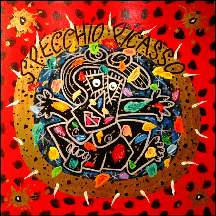DONZELLI BRUNO Napoli 1941 "Specchio Picasso" Olio su tela cm 100x100. Firmato sul fronte in basso al centro, sul retro firma e titolo. Autentica su foto a cura dell'artista.