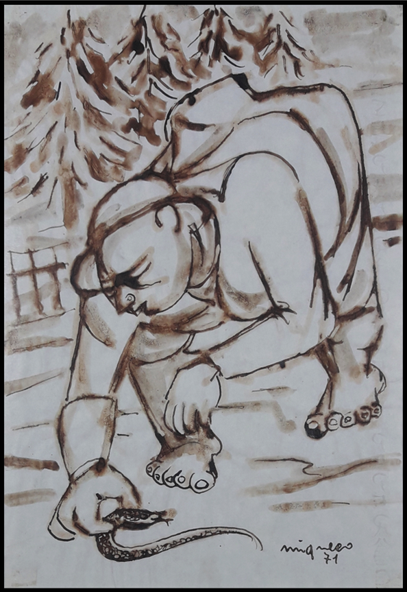 MIGNECO GIUSEPPE Messina 1903 - Milano 1997 "Il Serparo" Tecnica mista su carta cm 20x30 del 1971. Firmato e datato sul fronte in basso a destra. Sul retro timbro. Opera pubblicata sul catalogo generale. Archiviazione su foto.