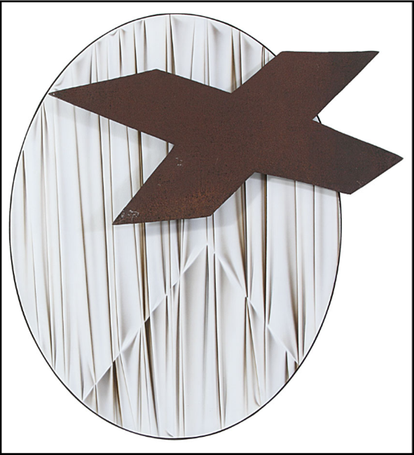 MARIANI UMBERTO Milano 1936 "Senza titolo" Acrilico su tela applicata su tavola, più lastra di ferro cm 90x120x7, del 1989. Opera firmata, intitolata e datata al retro. Dichiarazione d'autenticità dell'artista su foto. Certificazione casa d'aste.