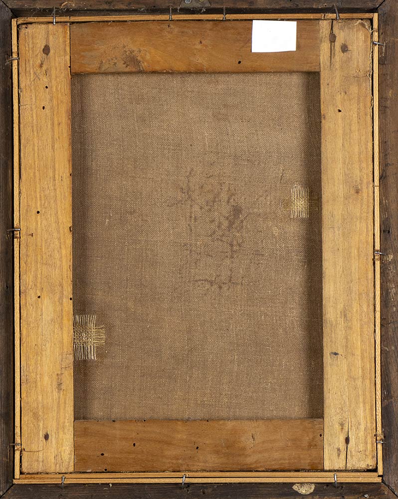 Buone condizioni, cornice senza vetro; vari restauri visibili al retro