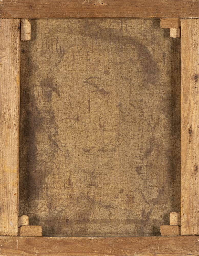 Buone condizioni, cornice senza vetro; piccolo strappo della tela in basso a destra