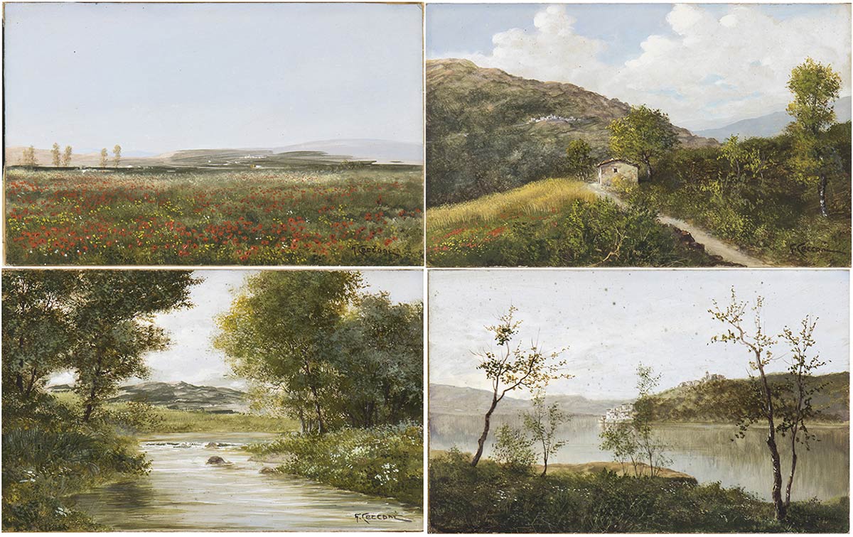 Lotto 13 | GIUSEPPE CECCONI (Foligno, 1877): Lotto composto da 4 tempere raffiguranti paesaggi