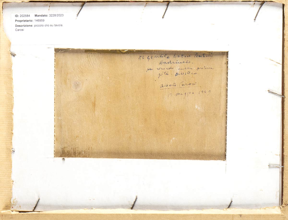 Al retro dedica firmata e datata: Alberto Carosi, 1949