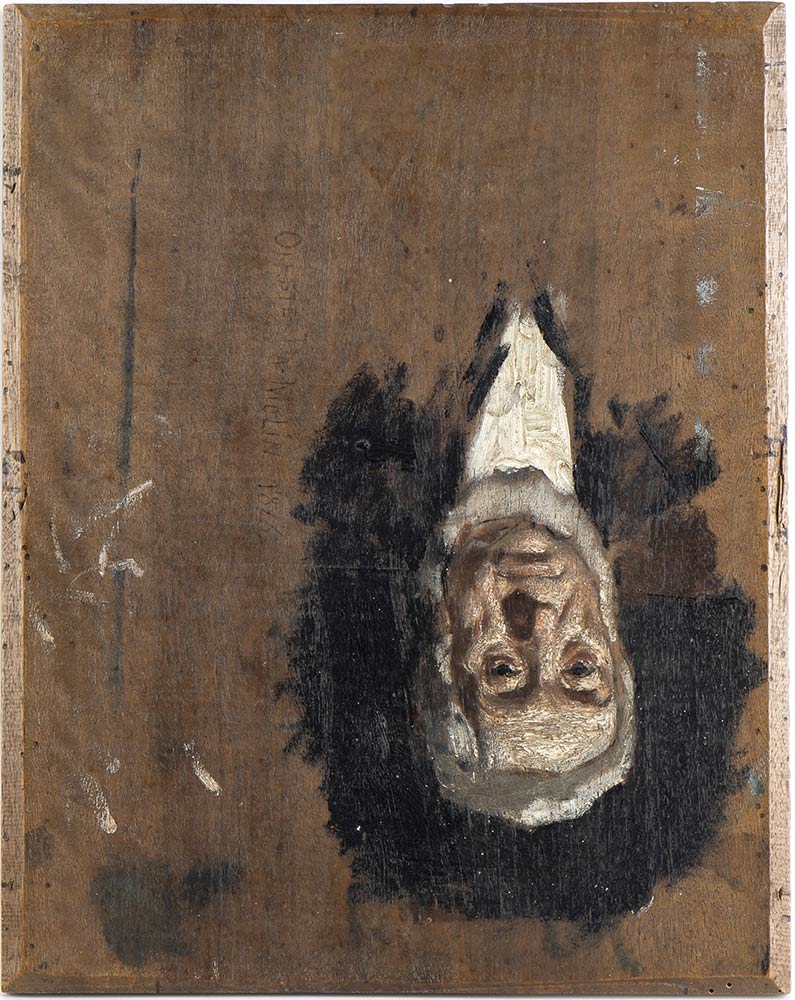 Ritratto di uomo sorridente al recto e bozzetto di anziano dignitario al verso, 1876
