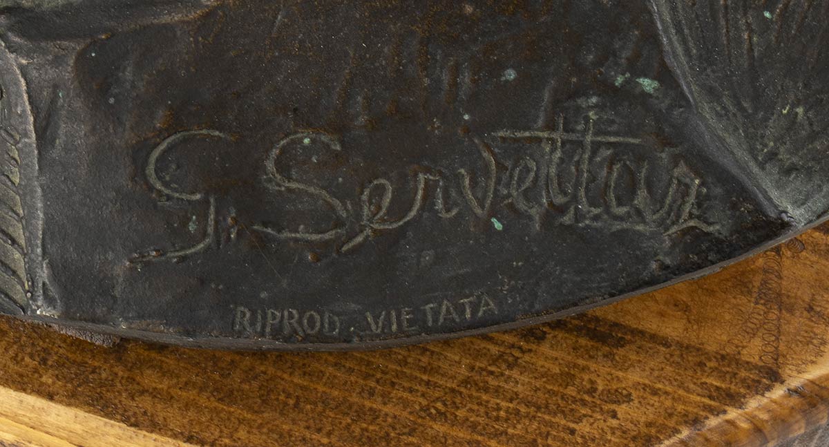 Tondo in bronzo realizzato per il decennale della Marcia su Roma, firma incisa in basso: S. Servettaz