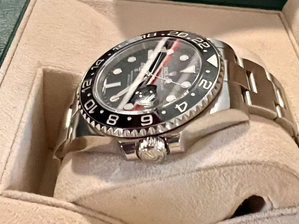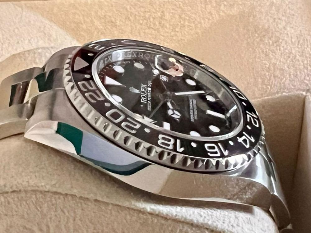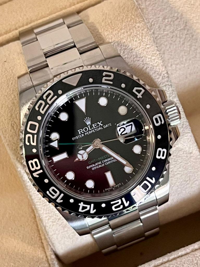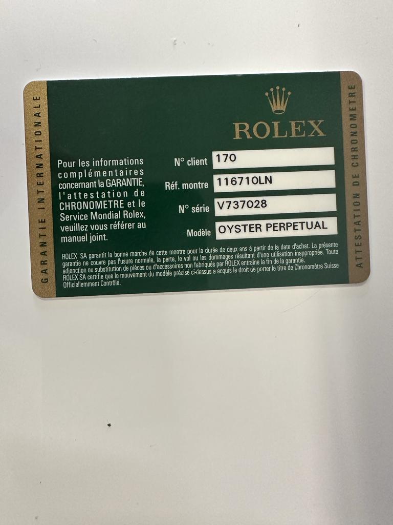 Marca Rolex Modello (Orologio) GMT-Master II Numero di referenza 116710LN Carica Automatico Materiale della cassa Acciaio Materiale cinturino Acciaio Anno di produzione 2010 Condizione ECCELLENTE Corredo Con scatola di fornitura e documenti originali, Garanzia Rolex Carica Automatico Cassa Materiale della cassa Acciaio Diametro 40 mm Prova Impermeabile 10 ATM Materiale lunetta Ceramica Vetro zaffiro Quadrante Nero Numeri sul quadrante Senza numeri Cinturino Materiale Acciaio Colore cinturino Acciaio Chiusura Déployante Materiale chiusura Acciaio Funzioni Data, GMT