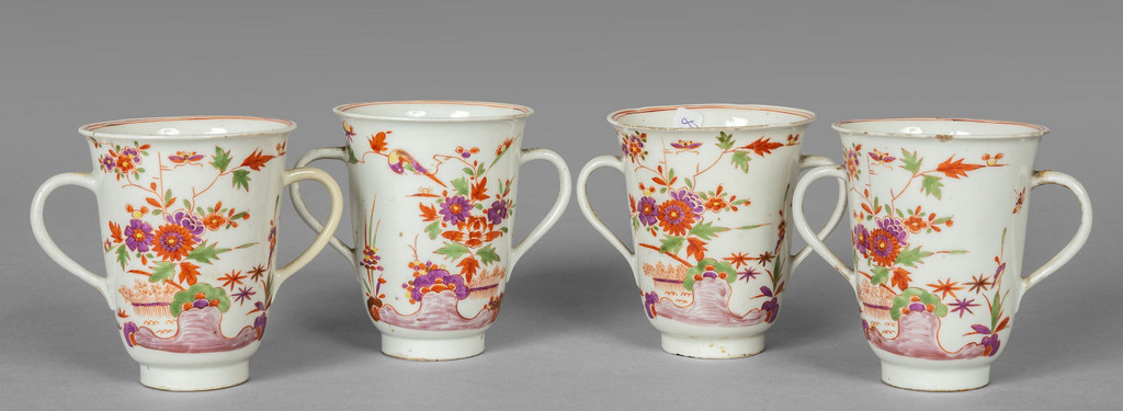 Quattro tazzine in porcellana policroma con doppia presa Cina sec.XVIII